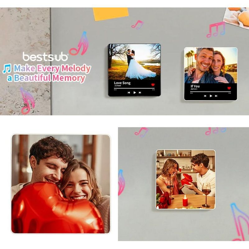 Превърнете всяка мелодия в красив спомен с магнит за хладилник с музикално звучене! Вашите снимки и вашата музика, направени само за вас!